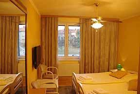 Capacidad del hotel es de 38 camas. En total hay 8 dobles, 1 triples y 4 cuádruples, 1 Suite. Las habitaciones están equipadas con cuarto de baño con ducha o bañera, WC, satélite y televisión por cable, refrigerador, teléfono, acceso a Internet. Algunas habitaciones tienen balcón.